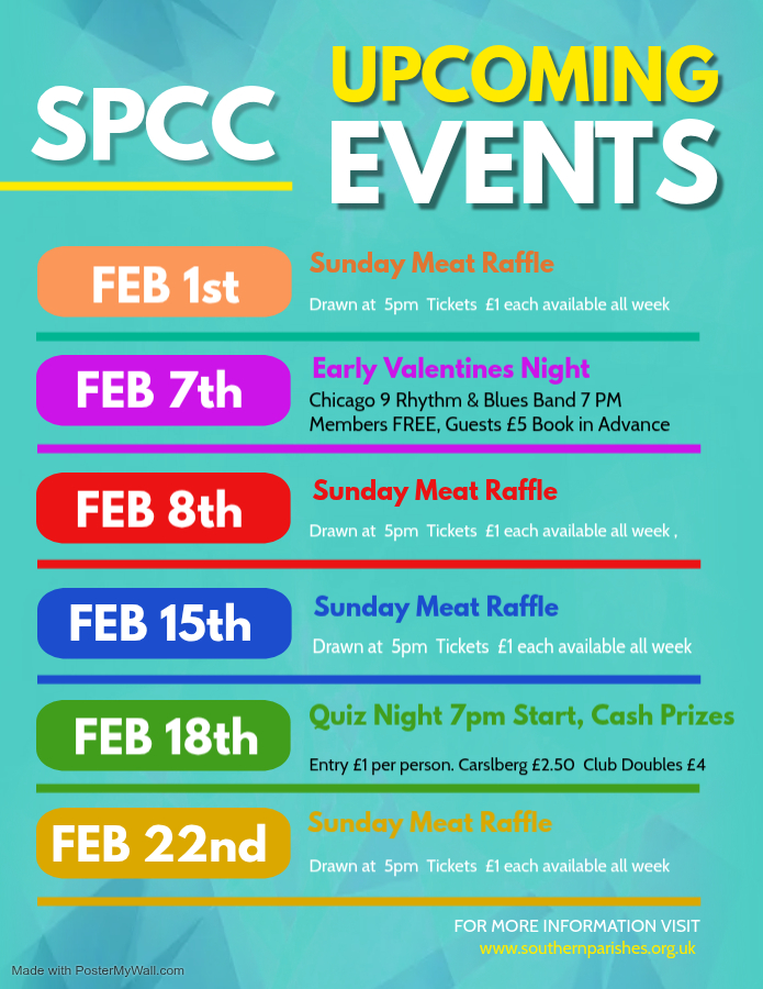 Southern Parishes Conservative Club can be hired Monday – Sunday from 12 noon.